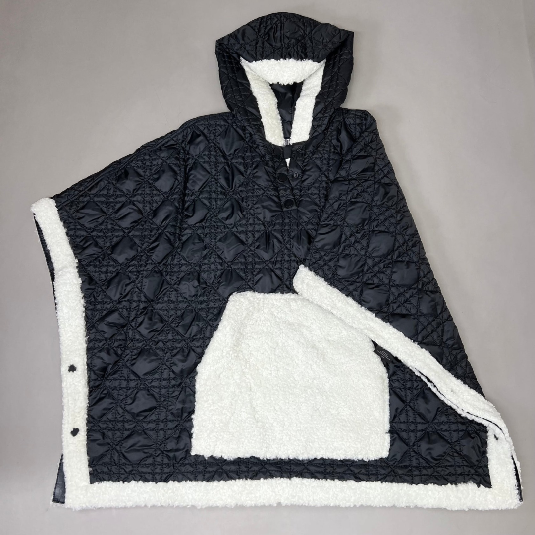PONCHO EN NYLON AVEC FOURRURE D’AGNEAU BOUCLÉE